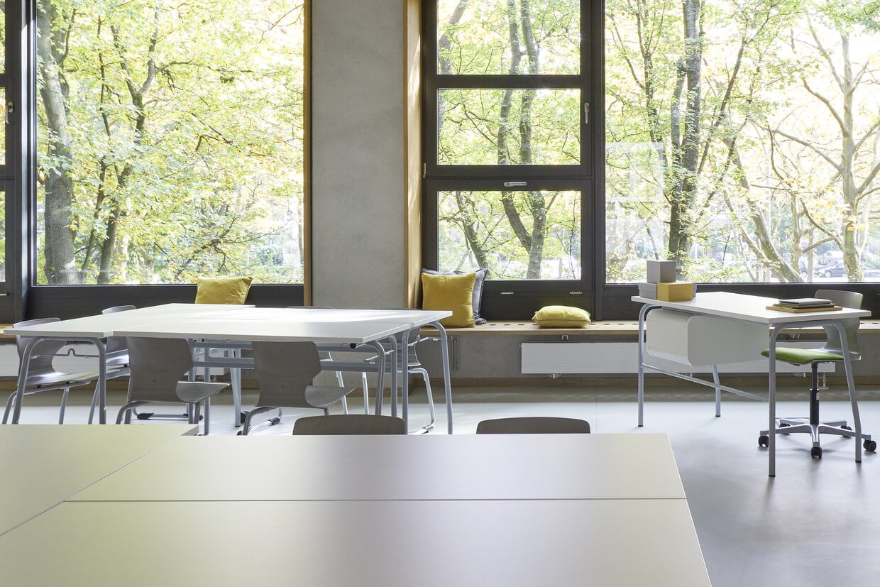 Wherever furniture is subject to particularly heavy use, we rely on PAGHOLZ®. During production, thin layers of wood veneer are pressed into the desired shape under heat with up to 2,000 tons of pressure. As a result, our PAGHOLZ® shells, despite their slim cross-section, are extremely robust and resistant: scratch and wear resistant, impact and break resistant, stain and abrasion resistant, lightfast, resistant to chemicals, flame retardant and self-extinguishing.