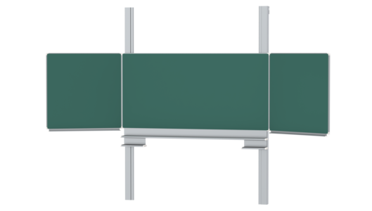 With stable column guide for wall mounting. Writing surface enamelled and magnetic steel, glued with support plate, guided between the pylons. Edges with natural anodized aluminum profiles and rounded plastic corners. Edging glued watertight. Board includes marker tray.