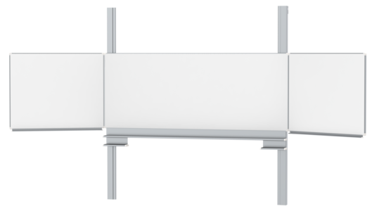 With stable column guide for wall mounting. Writing surface enamelled and magnetic steel, glued with support plate, guided between the pylons. Edges with natural anodized aluminum profiles and rounded plastic corners. Edging glued watertight. Board includes marker tray.