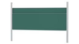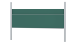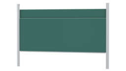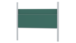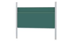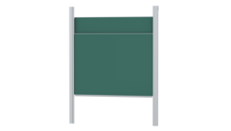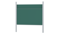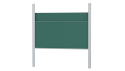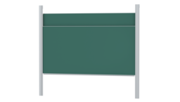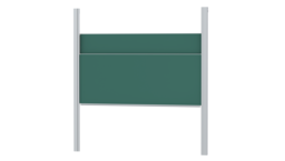 With stable column guide for wall mounting. Writing surface enamelled and magnetic steel, glued with support plate, guided between the pylons. Edges with natural anodized aluminum profiles and rounded plastic corners. Edging glued watertight. Board includes marker tray.