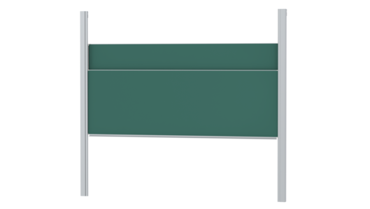 With stable column guide for wall mounting. Writing surface enamelled and magnetic steel, glued with support plate, guided between the pylons. Edges with natural anodized aluminum profiles and rounded plastic corners. Edging glued watertight. Board includes marker tray.