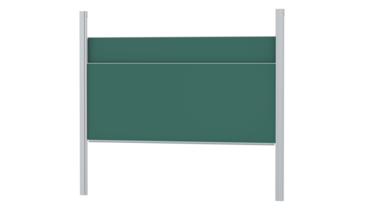 With stable column guide for wall mounting. Writing surface enamelled and magnetic steel, glued with support plate, guided between the pylons. Edges with natural anodized aluminum profiles and rounded plastic corners. Edging glued watertight. Board includes marker tray.