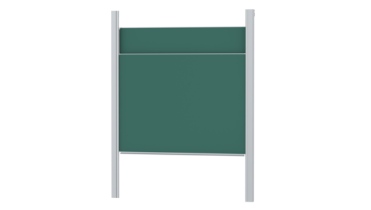 With stable column guide for wall mounting. Writing surface enamelled and magnetic steel, glued with support plate, guided between the pylons. Edges with natural anodized aluminum profiles and rounded plastic corners. Edging glued watertight. Board includes marker tray.