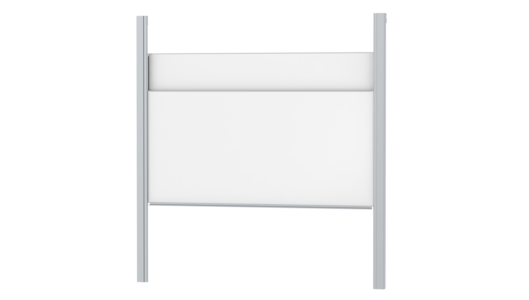 With stable column guide for wall mounting. Writing surface enamelled and magnetic steel, glued with support plate, guided between the pylons. Edges with natural anodized aluminum profiles and rounded plastic corners. Edging glued watertight. Board includes marker tray.