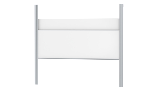 With stable column guide for wall mounting. Writing surface enamelled and magnetic steel, glued with support plate, guided between the pylons. Edges with natural anodized aluminum profiles and rounded plastic corners. Edging glued watertight. Board includes marker tray.