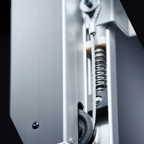 - Maintenance-free and low-noise precision guidance on 8 ball-bearing polyamide rollers and metal springs with rubber buffer to stop the end position