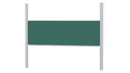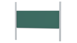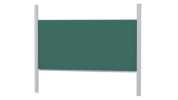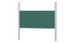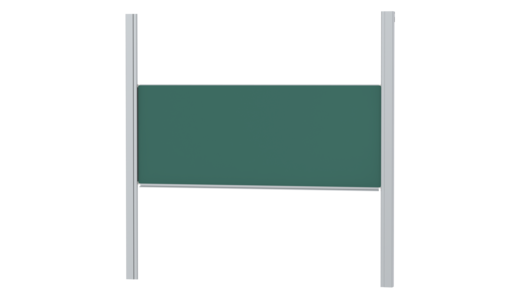 With stable column guide for wall mounting. Writing surface enamelled and magnetic steel, glued with support plate, guided between the pylons. Edges with natural anodized aluminum profiles and rounded plastic corners. Edging glued watertight. Board includes marker tray.