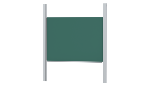 With stable column guide for wall mounting. Writing surface enamelled and magnetic steel, glued with support plate, guided between the pylons. Edges with natural anodized aluminum profiles and rounded plastic corners. Edging glued watertight. Board includes marker tray.