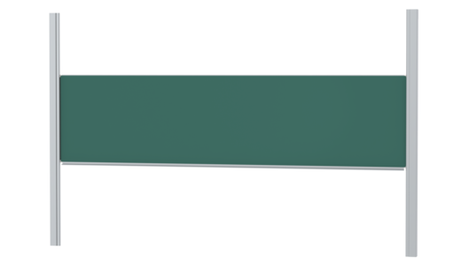With stable column guide for wall mounting. Writing surface enamelled and magnetic steel, glued with support plate, guided between the pylons. Edges with natural anodized aluminum profiles and rounded plastic corners. Edging glued watertight. Board includes marker tray.