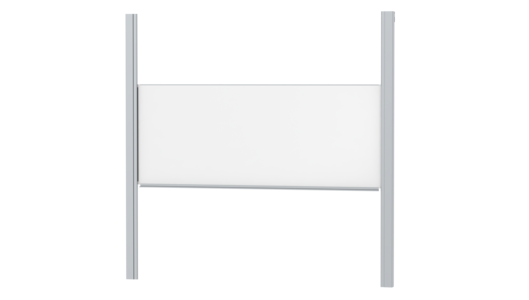 With stable column guide for wall mounting. Writing surface enamelled and magnetic steel, glued with support plate, guided between the pylons. Edges with natural anodized aluminum profiles and rounded plastic corners. Edging glued watertight. Board includes marker tray.