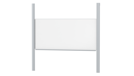 With stable column guide for wall mounting. Writing surface enamelled and magnetic steel, glued with support plate, guided between the pylons. Edges with natural anodized aluminum profiles and rounded plastic corners. Edging glued watertight. Board includes marker tray.
