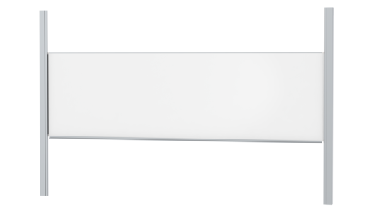 With stable column guide for wall mounting. Writing surface enamelled and magnetic steel, glued with support plate, guided between the pylons. Edges with natural anodized aluminum profiles and rounded plastic corners. Edging glued watertight. Board includes marker tray.