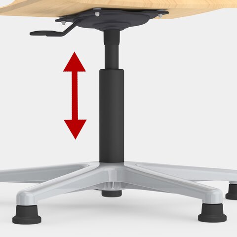 Aluminum 5-star base, with infinitely variable gas lift height adjustment. Round tubular column: 50 mm, epoxy coated. With plastic feet.