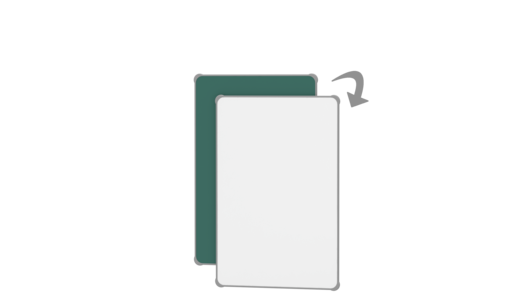 Front and back with two different writing surfaces, 1x green steel for chalk and 1x white steel for dry erase pens.