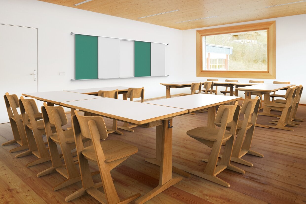 - Board elements with robust and impact-resistant ASSODUR® edge can be easily moved one behind the other thanks to the double-rail profile system.