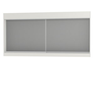 Body made of 3-layer chipboard (E1), melamine coated, material thickness 19 mm. Rear panel with cork support. Display cabinet with 2 lockable glass sliding doors made of safety glass, with panel for lighting.