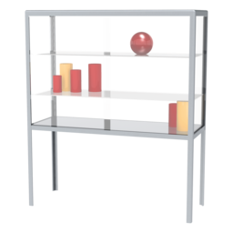 The showcase is made of sturdy aluminum profiles and the front side can be opened through smooth-running glass sliding doors.