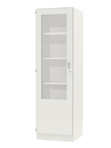 The glued-in, 8 mm thick back panel gives the cabinet its stability and strength. The door with safety lock can be opened at an angle of 240° by the robust all-metal hinges.