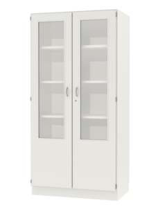 2-door, lockable on one side, without center panel. 2/3 safety glass doors.