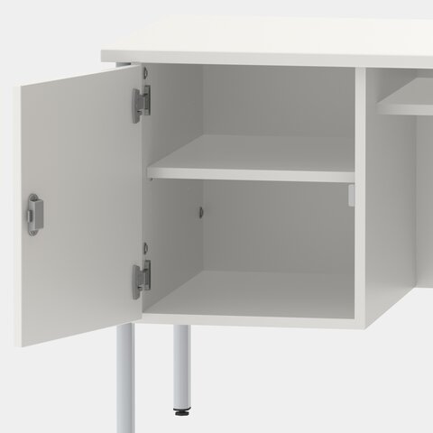 - Base cabinet includes one shelf behind hinged door, lockable by means of security lock