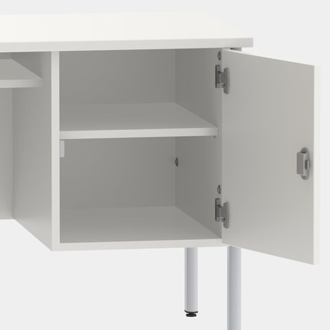 - Base cabinet includes one shelf behind hinged door, lockable by means of security lock