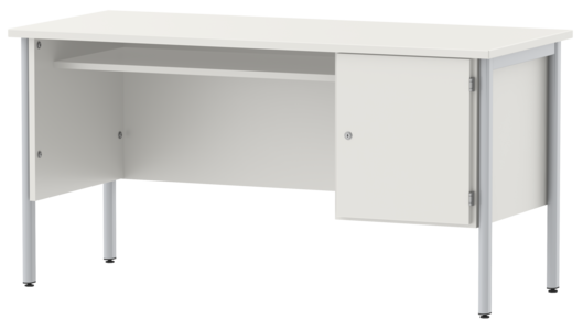- Base cabinet includes one shelf behind hinged door, lockable by means of security lock