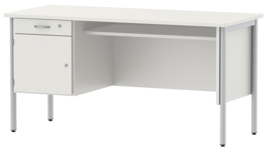 - Base cabinet includes drawer and one shelf behind hinged door, lockable by means of security lock
