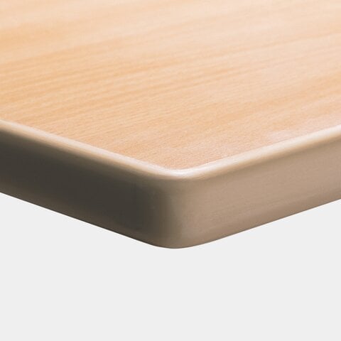 - Table top with multilayer melamine resin coating and robust plastic edge