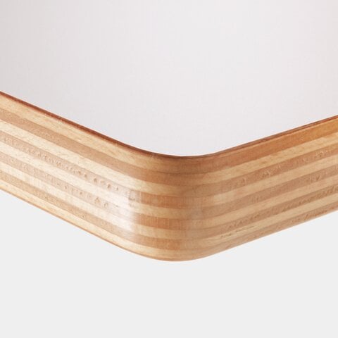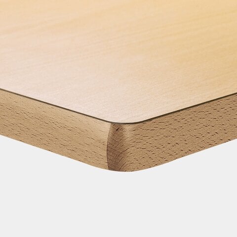 - Optional: melamine coated table top with solid wood edge, spherical glued-in edging