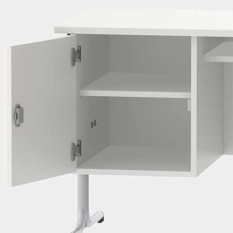 - Base cabinet includes one shelf behind hinged door, lockable by means of security lock