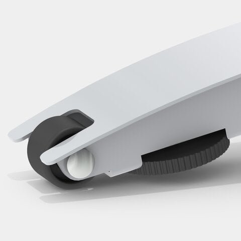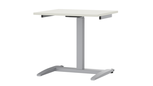 The mono-column table stands stable on any surface due to its floor protectors with level compensation. Two additional casters on the rear leg make it easy to move and flexible to use.