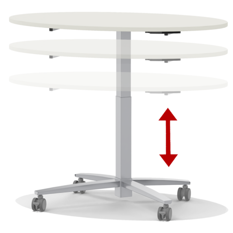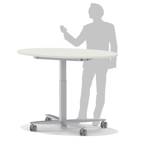 The mono-column table is easy to move and flexible in use thanks to its 4 swivel casters. By means of convenient one-hand operation, the table can be quickly transformed from a writing table to a standing table.