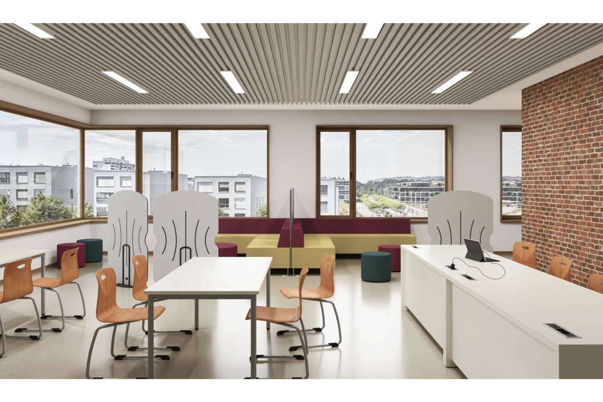 Tabletop and side panels, 3-layer chipboard (E1) according to DIN EN 312, melamine coated according to DIN EN 14322, highly abrasion-resistant, with 2 mm plastic edge, thickness: 38 mm. Flame retardant, certified according to DIN 4102-B1.