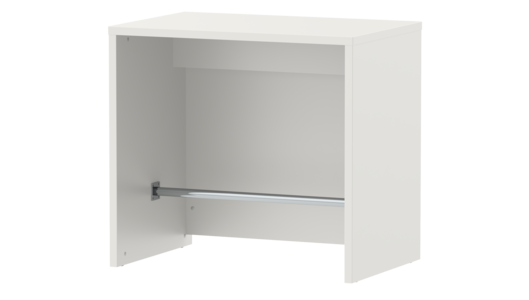 Tabletop and side panels, 3-layer chipboard (E1) according to DIN EN 312, melamine coated according to DIN EN 14322, highly abrasion-resistant, with 2 mm plastic edge, thickness: 38 mm. Flame retardant, certified according to DIN 4102-B1.