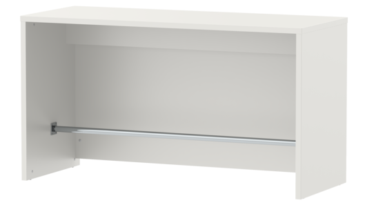 Tabletop and side panels, 3-layer chipboard (E1) according to DIN EN 312, melamine coated according to DIN EN 14322, highly abrasion-resistant, with 2 mm plastic edge, thickness: 38 mm. Flame retardant, certified according to DIN 4102-B1.