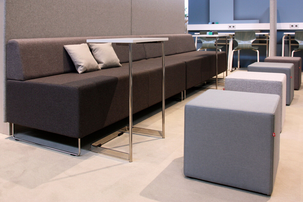 - Table top with multilayer melamine resin coating and robust plastic edge