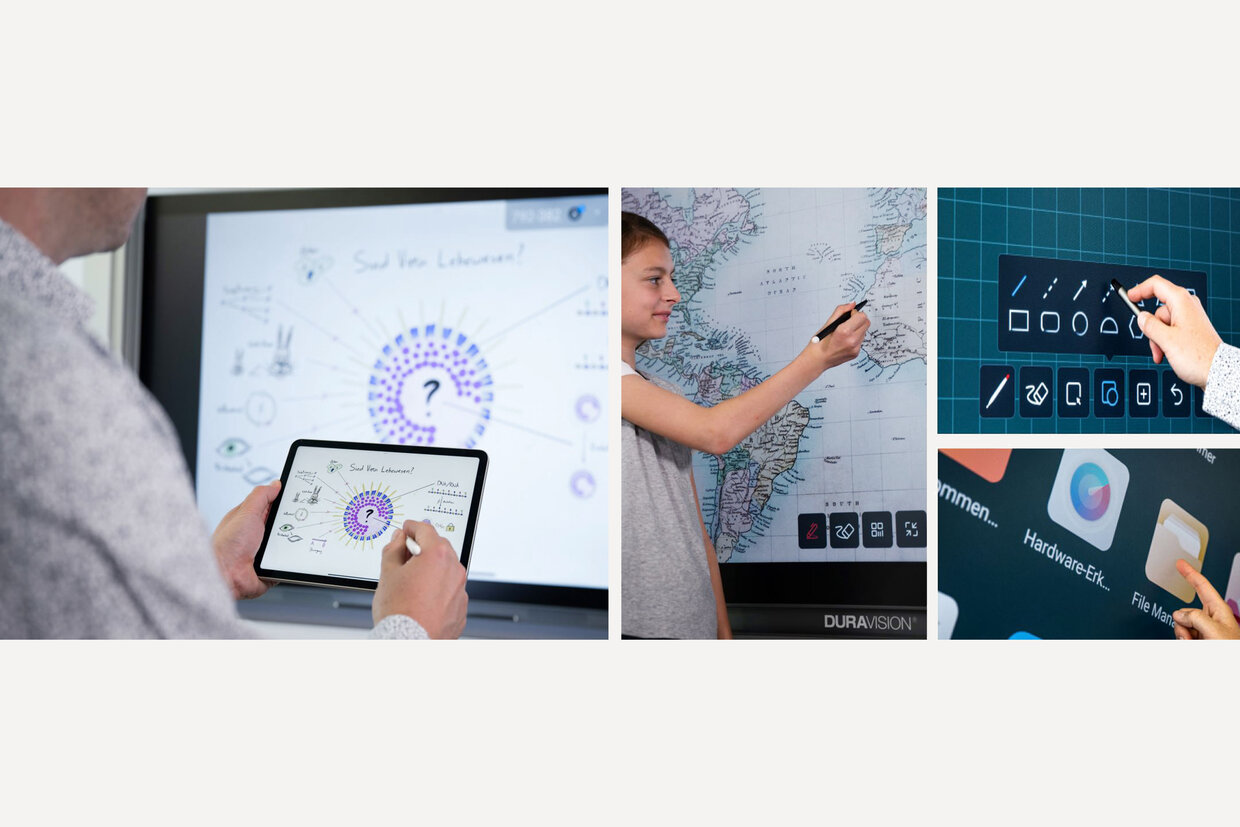 The combined whiteboard systems combine the advantages of a classic whiteboard with the modern technology used in the intelligent cooperation of computer and monitor or projector. For a lesson where everything works together perfectly