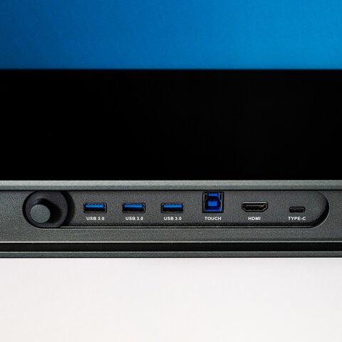 Digital panel, display size 75" & 86", made of tempered glass (ESG), glare-free with touch screen, aspect ratio 16:9, resolution 3,840 x 2,160 pixels (UHD);