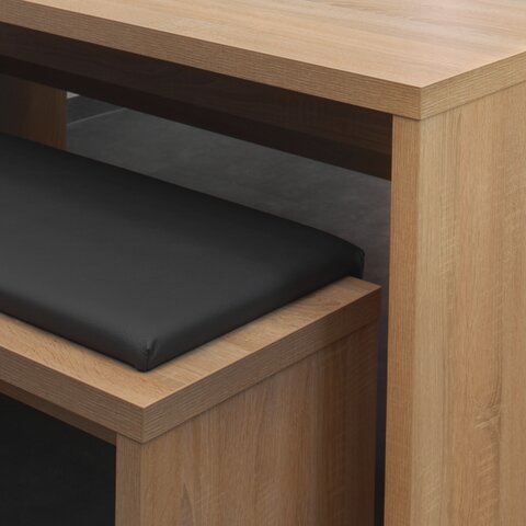 Seat and side panels, 3-layer chipboard (E1) according to DIN EN 312, melamine coated according to DIN EN 14322, highly abrasion-resistant, with 2 mm plastic edge, thickness: 38 mm. Flame retardant, certified according to DIN 4102-B1.
