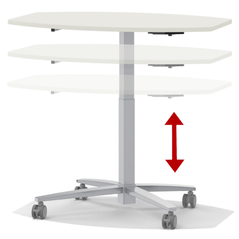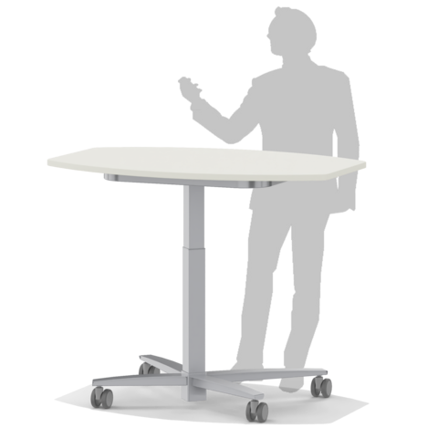The mono-column table is easy to move and flexible in use thanks to its 4 swivel casters. By means of convenient one-hand operation, the table can be quickly transformed from a writing table to a standing table.