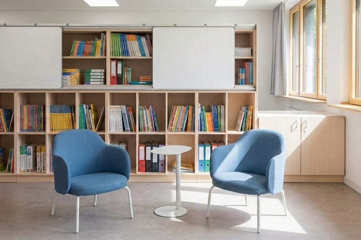 Our FLOW series creates a seamless combination of cosy comfort and long-lasting functionality in everyday school and work life. Thanks to the wide range of colours and fabrics as well as the different versions of the series, you can create a modern and harmonious appearance across all functional zones of your furnishings.