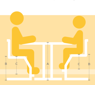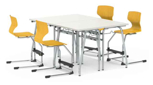 - Gemeinsames Sitzen an einheitlicher Tischgröße mit Arbeitshöhe von 76 cm (Größe 6)