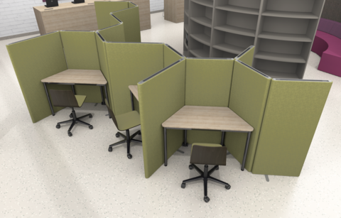 Die Einzelarbeitsplätze verfügen über halbhohe COMBi Akustik-Trennwände und erlauben konzentriertes, störungsfreies Arbeiten.