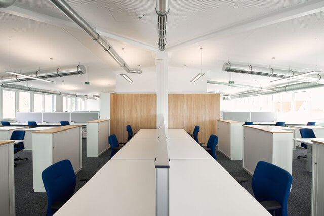 und klar strukturiert. Von modernen Großraumbüros und Besprechungsräumen über Kreativbereiche und Küchen bis zum Präsentations- und Showroom, findet jede Arbeitsweise ihren passenden Bereich. Das nachhaltige Baukonzept erfüllt energie- und wärmetechnisch höchste Anforderungen.