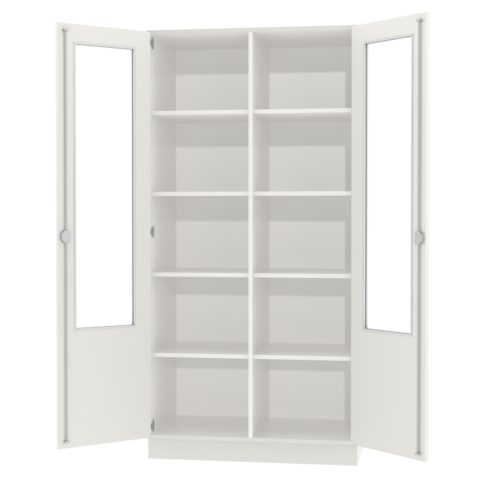 Vitrinenschrank, 5 OH (B 100 cm/T 60 cm), 2-türig, beidseitig abschließbar, mit Mittelseite