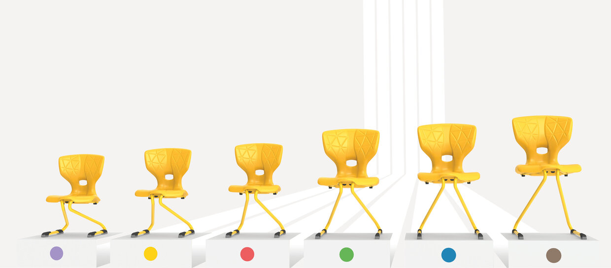 Der Einfachheit halber und auch aus visuellen Gründen werden Klassenräume viel zu oft mit einer einheitlichen Tisch- und Stuhlgröße ausgestattet. Da es jedoch selbst innerhalb einer Klasse Größenunterschiede von bis zu fünfzig Zentimetern gibt, müssen auch unterschiedliche Möbelgrößen vorhanden sein.