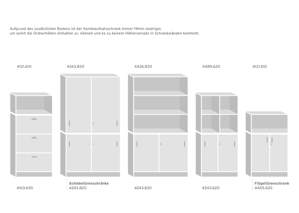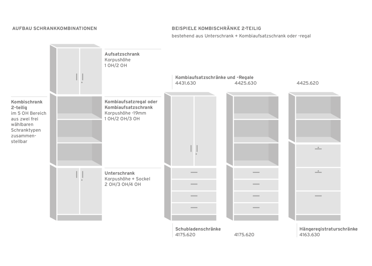 Die Kombischränke sind aus zwei frei wählbaren Schranktypen zusammenstellbar.